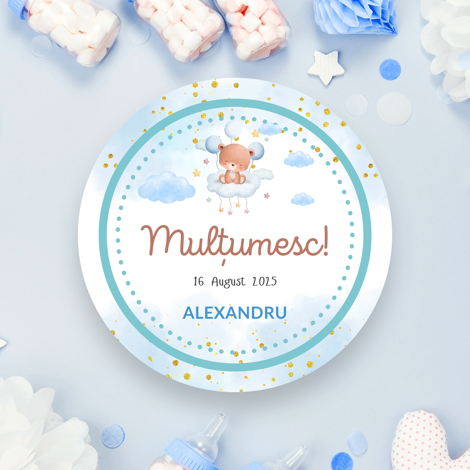 Adaugă un strop de farmec evenimentului tău cu aceste etichete autoadezive personalizate pentru botez 👶✨. Realizate din materiale de calitate și imprimate cu atenție la detalii, etichetele noastre sunt perfecte pentru mărturii, sticle, cutiuțe sau decoruri tematice.