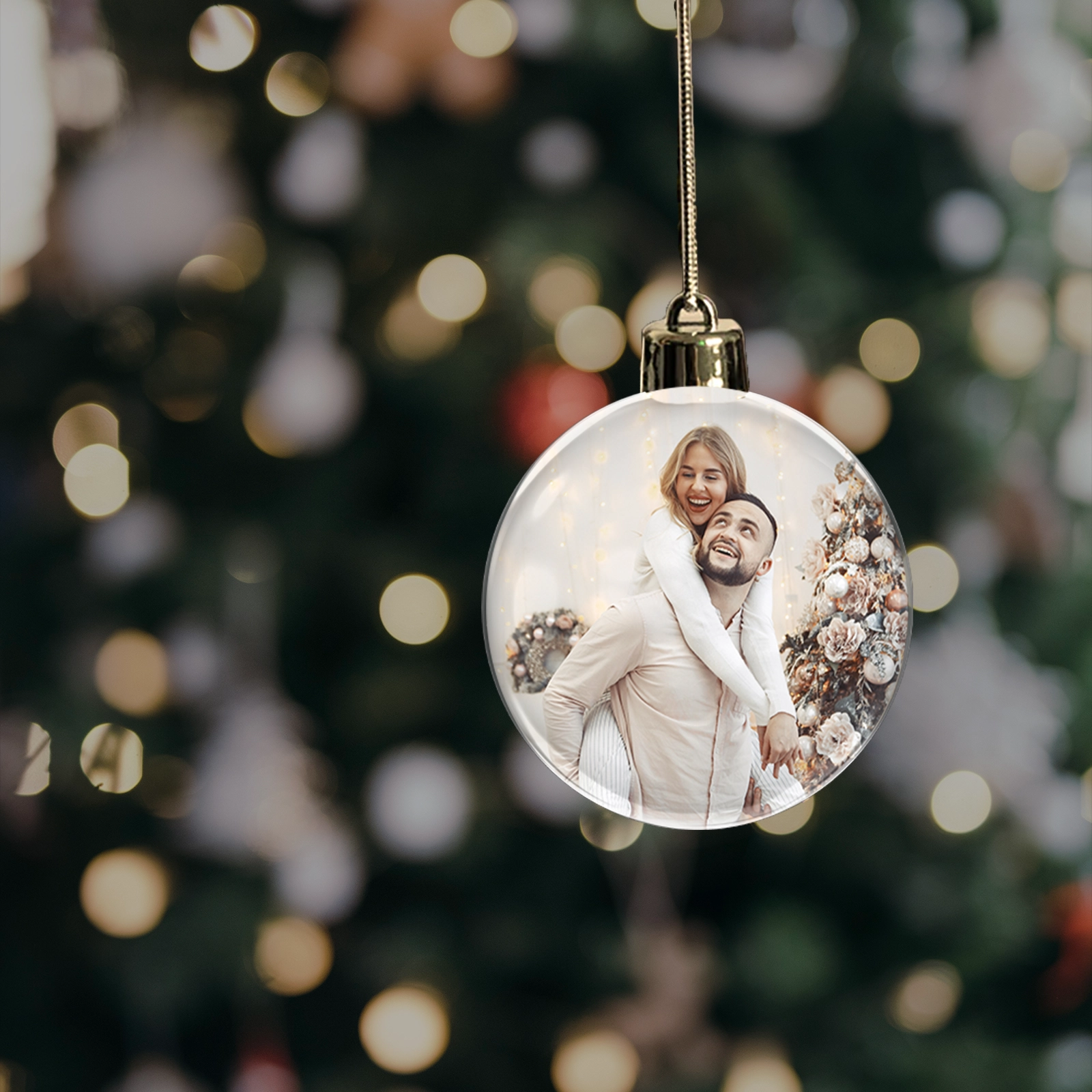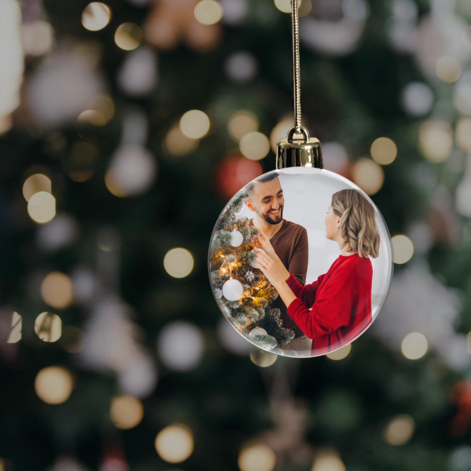 Transpune cele mai frumoase amintiri într-un decor festiv cu globul personalizat cu poză față-verso. Realizat pentru a aduce emoție și unicitate bradului de Crăciun, acest glob este accesoriul perfect pentru a celebra persoanele sau momentele dragi.