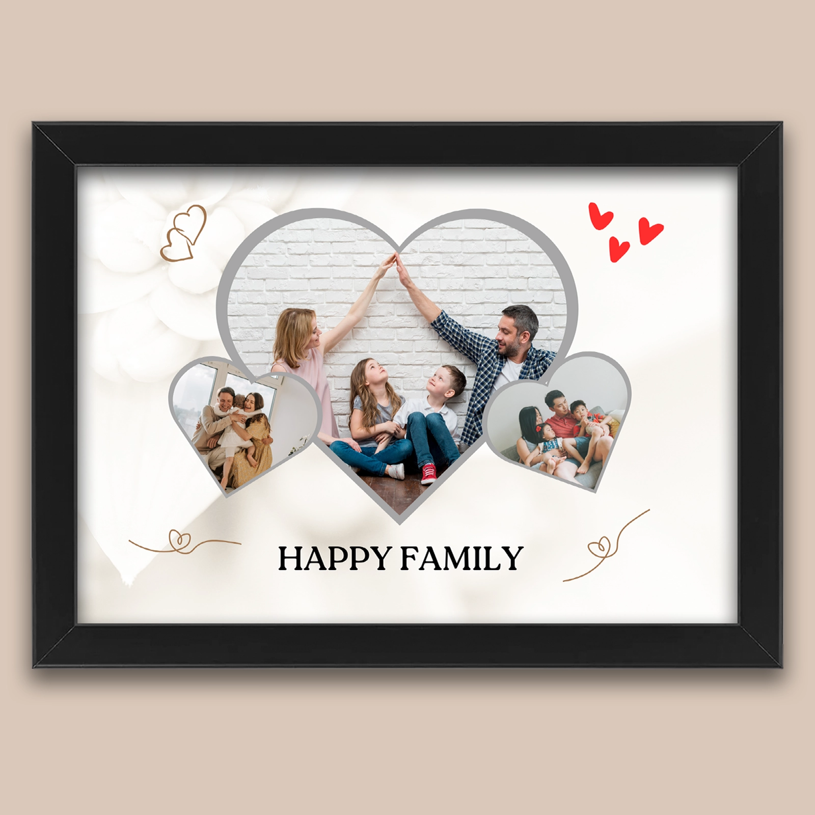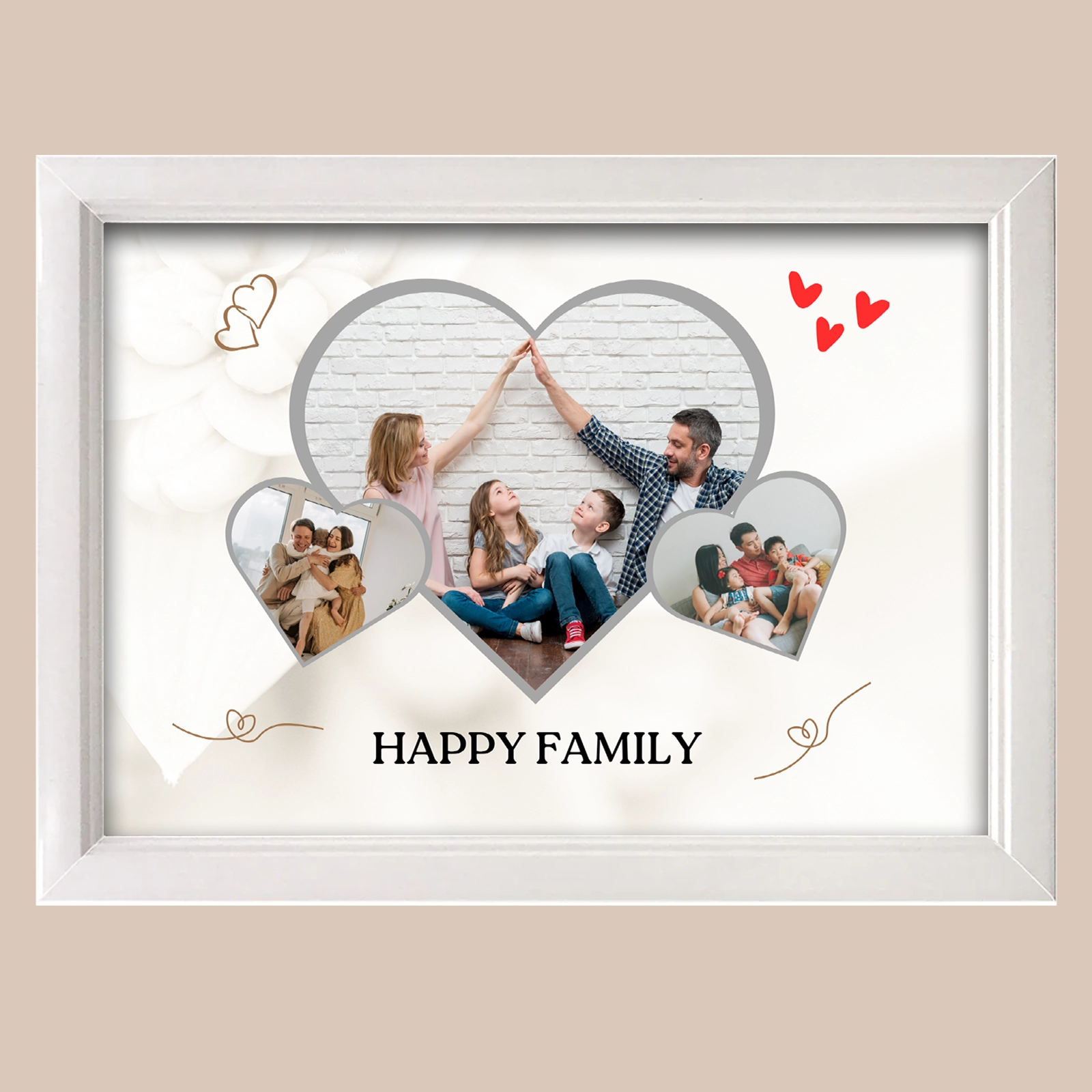 Păstrează amintirile aproape cu un tablou personalizat cu 3 poze în formă de inimă și text