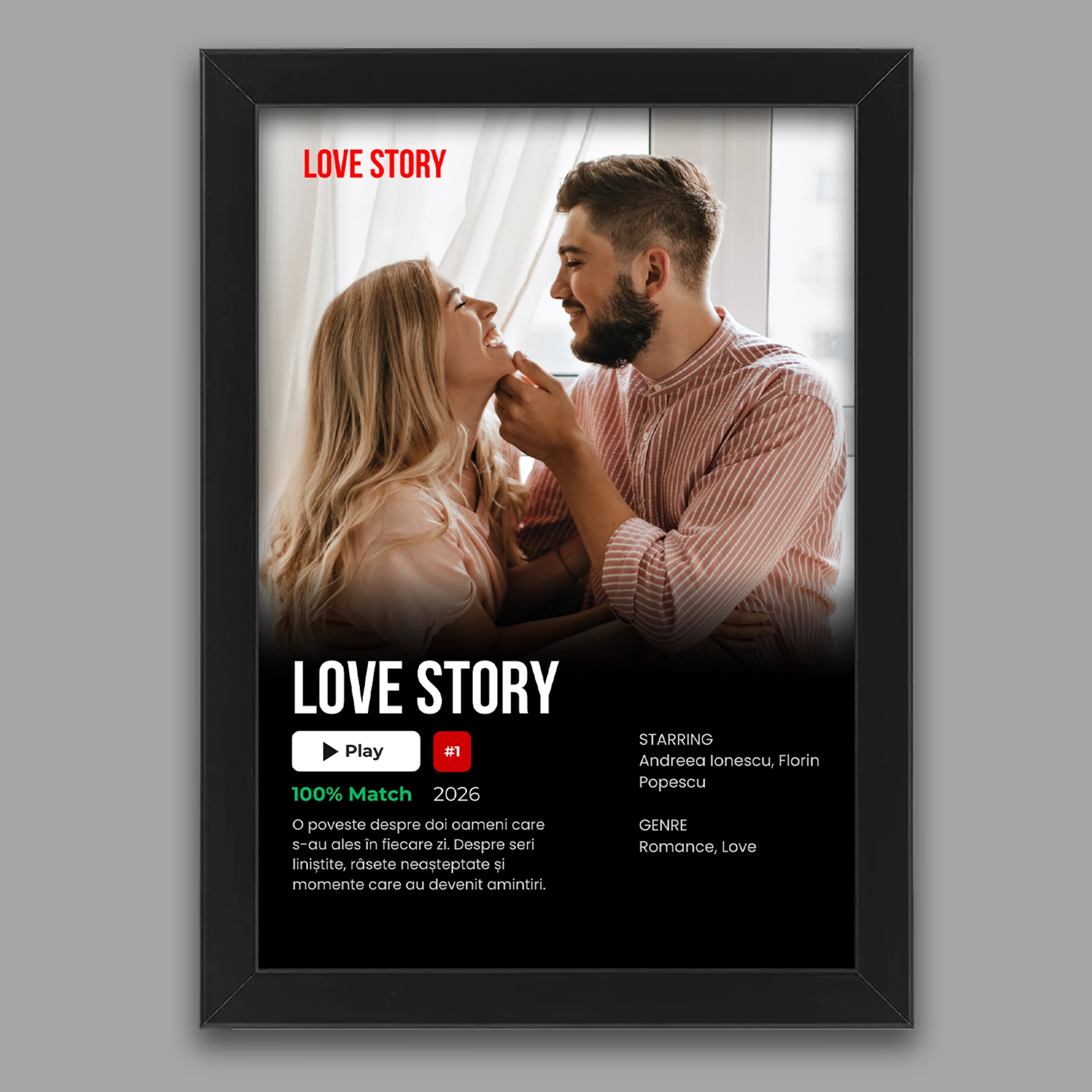 Transformă povestea voastră într-un adevărat film! Tabloul personalizat cu poză și text – film este creat pentru a reda emoțiile, momentele speciale și mesajul care vă reprezintă, într-un design inspirat din universul cinematografic. Ideal ca decor modern sau cadou memorabil pentru persoana iubită.