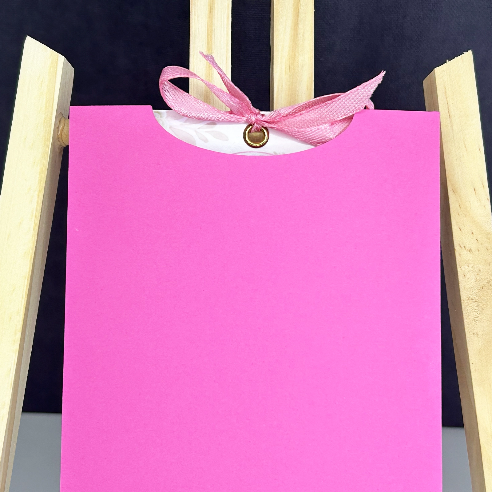 Realizată pe carton de calitate, cu design delicat și text personalizabil, invitația este însoțită de un plic roz elegant, care completează armonios întreaga prezentare.