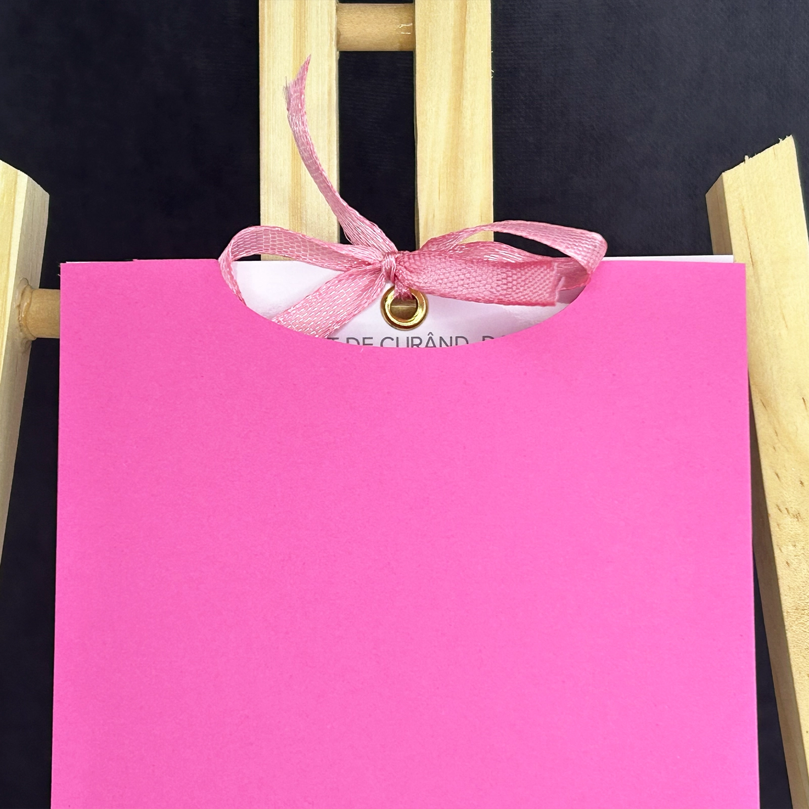 Fiecare invitație este livrată cu plic roz handmade din carton, pentru un plus de rafinament.
