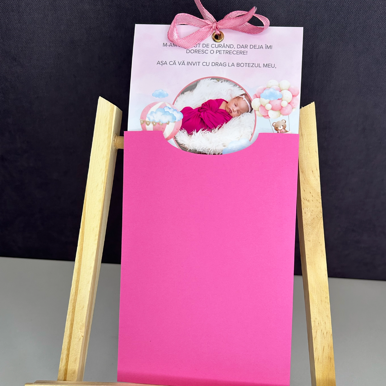Este imprimată pe carton de calitate, cu text complet personalizabil, și vine însoțită de un plic asortat, care completează elegant prezentarea. O alegere ideală pentru părinții care își doresc o invitație veselă, cu elemente drăgălașe și detalii atent lucrate.
