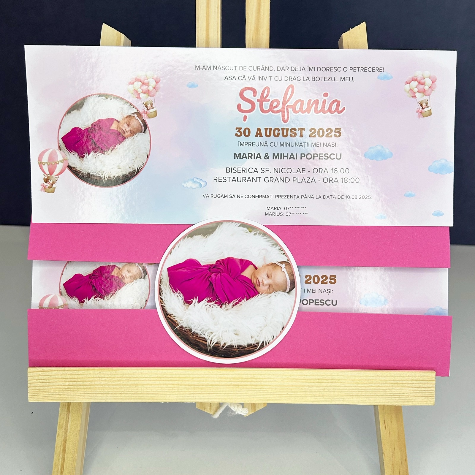 Un produs complet, perfect pentru părinții care își doresc o invitație cu adevărat specială, ce îmbină căldura mesajului cu un design adorabil și atent realizat.