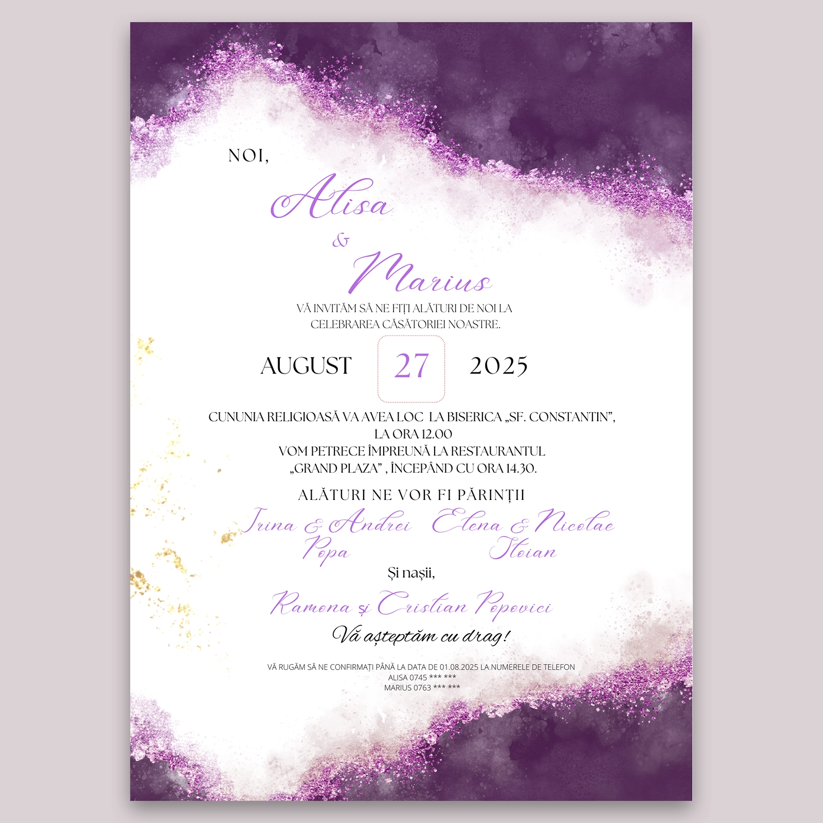 🕒 Timp de livrare: în maximum 48 de ore lucrătoare, vei primi invitația ta digitală, personalizată, în format PNG – gata de trimis prietenilor și familiei.