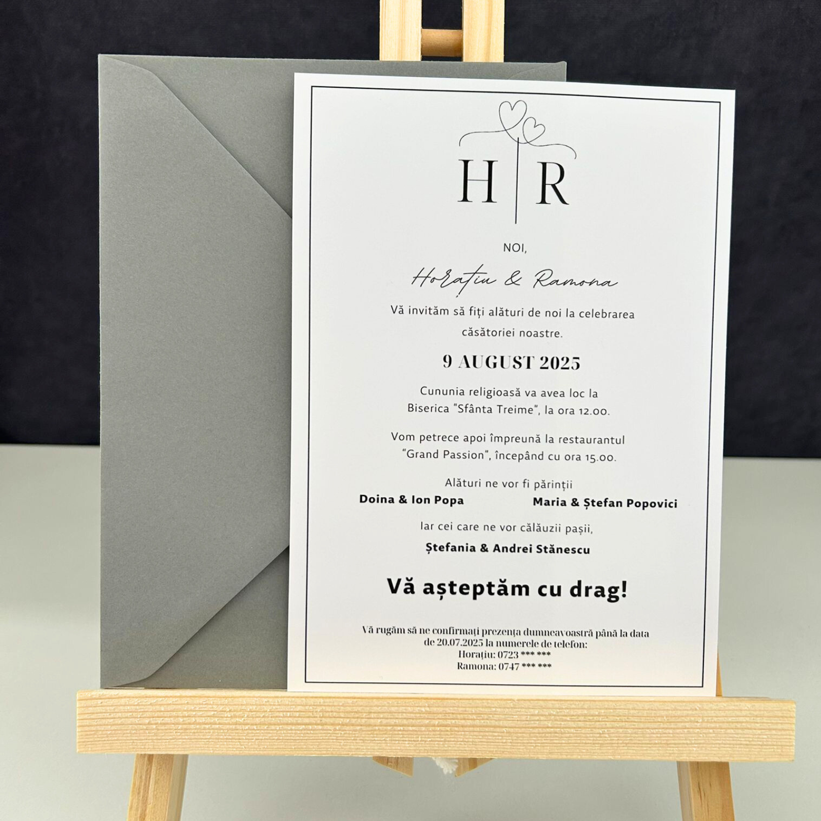 🔠 Invitație de nuntă simplă, cu inițiale – eleganță minimalistă și personalizare unică 🤍