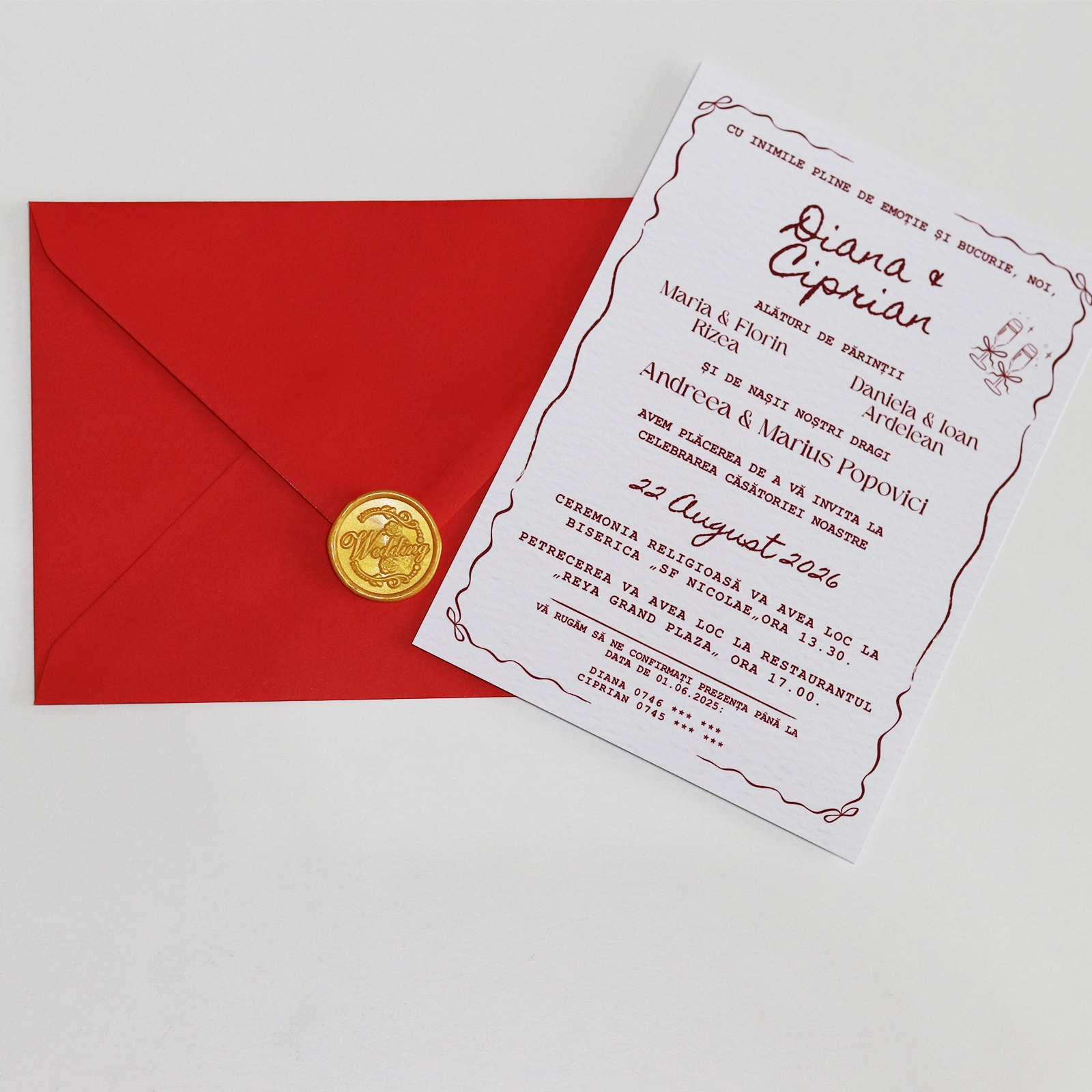 Plicul și sigiliul se adaugă separat din opțiunile disponibile. Culorile produsului final pot varia ușor față de cele afișate pe ecran, în funcție de setările dispozitivului utilizat.