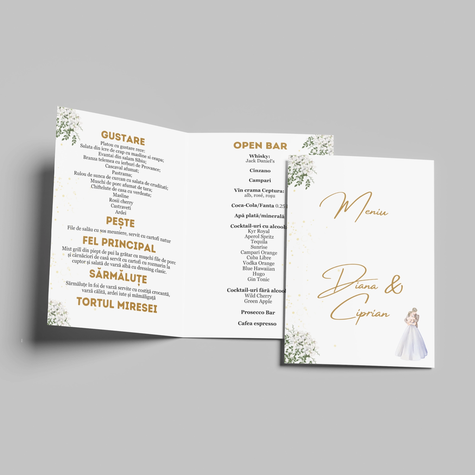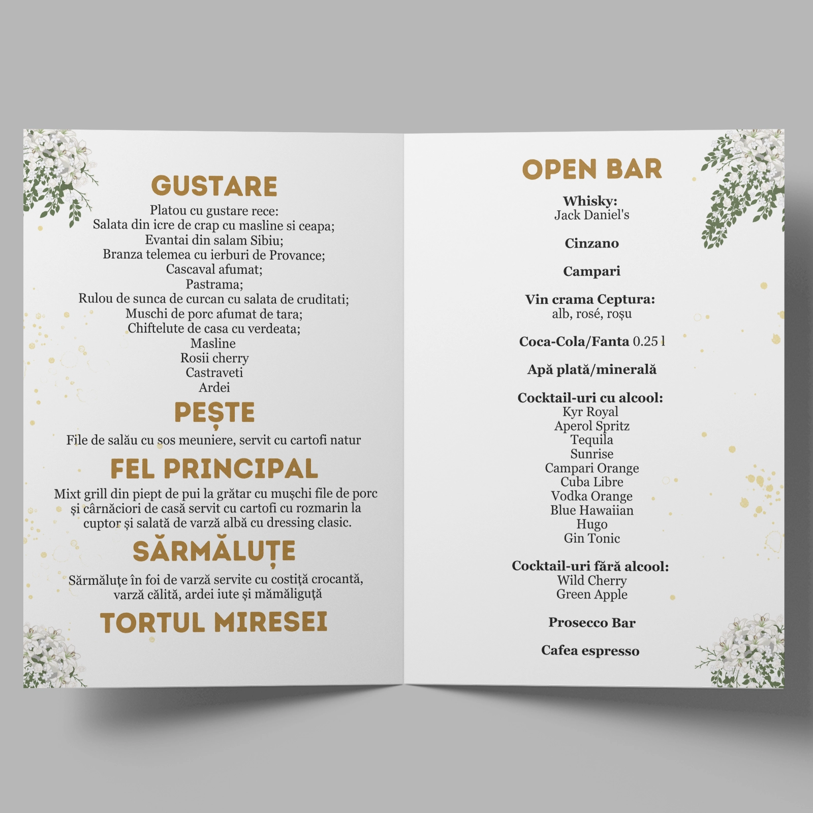 Acest meniu nu este doar o listă de preparate, ci o piesă de papetărie care transmite stilul și povestea voastră, oferind invitaților o experiență vizuală de neuitat.