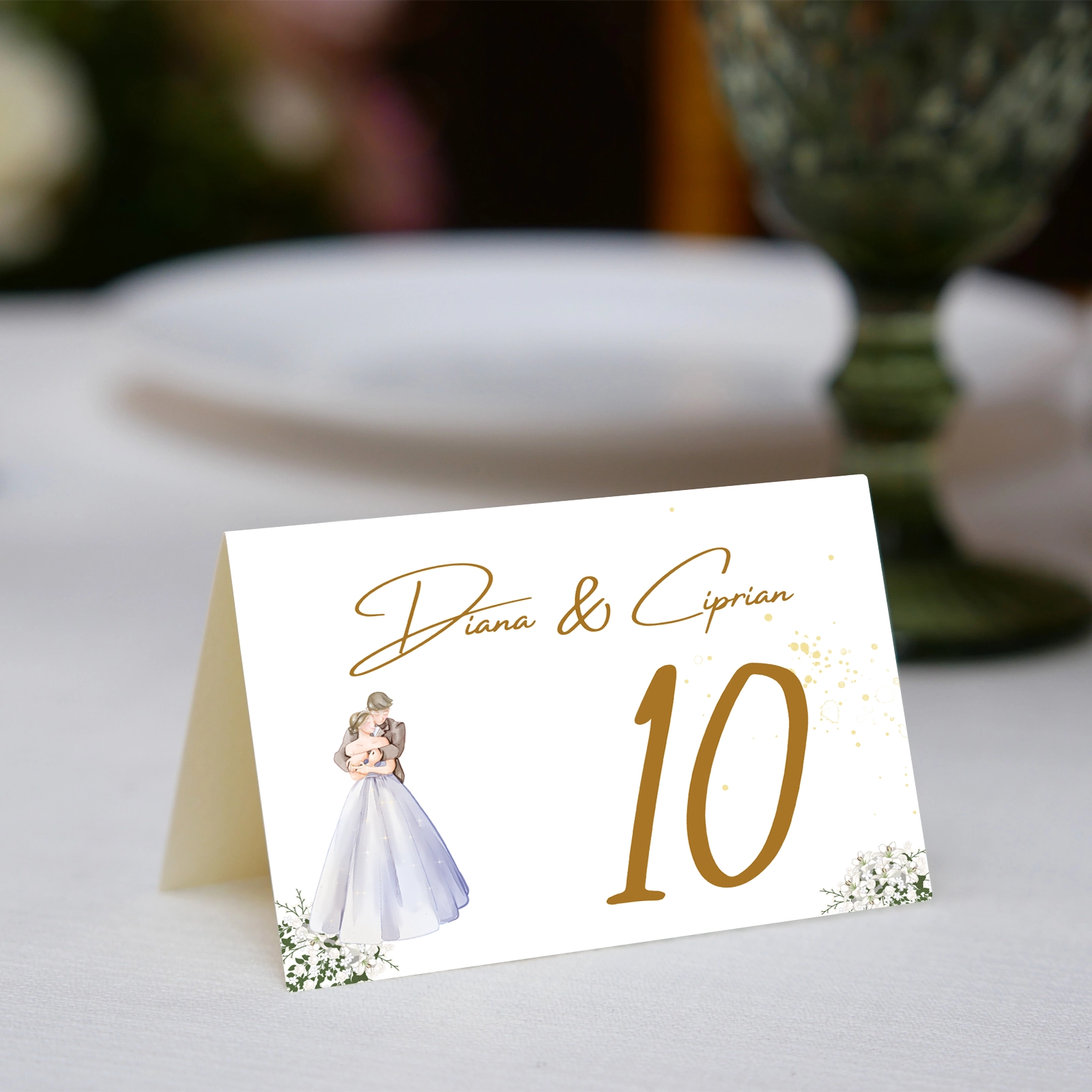 Acest număr de masă îmbină organizarea practică cu un element vizual care reflectă povestea voastră, contribuind la o atmosferă caldă și memorabilă.