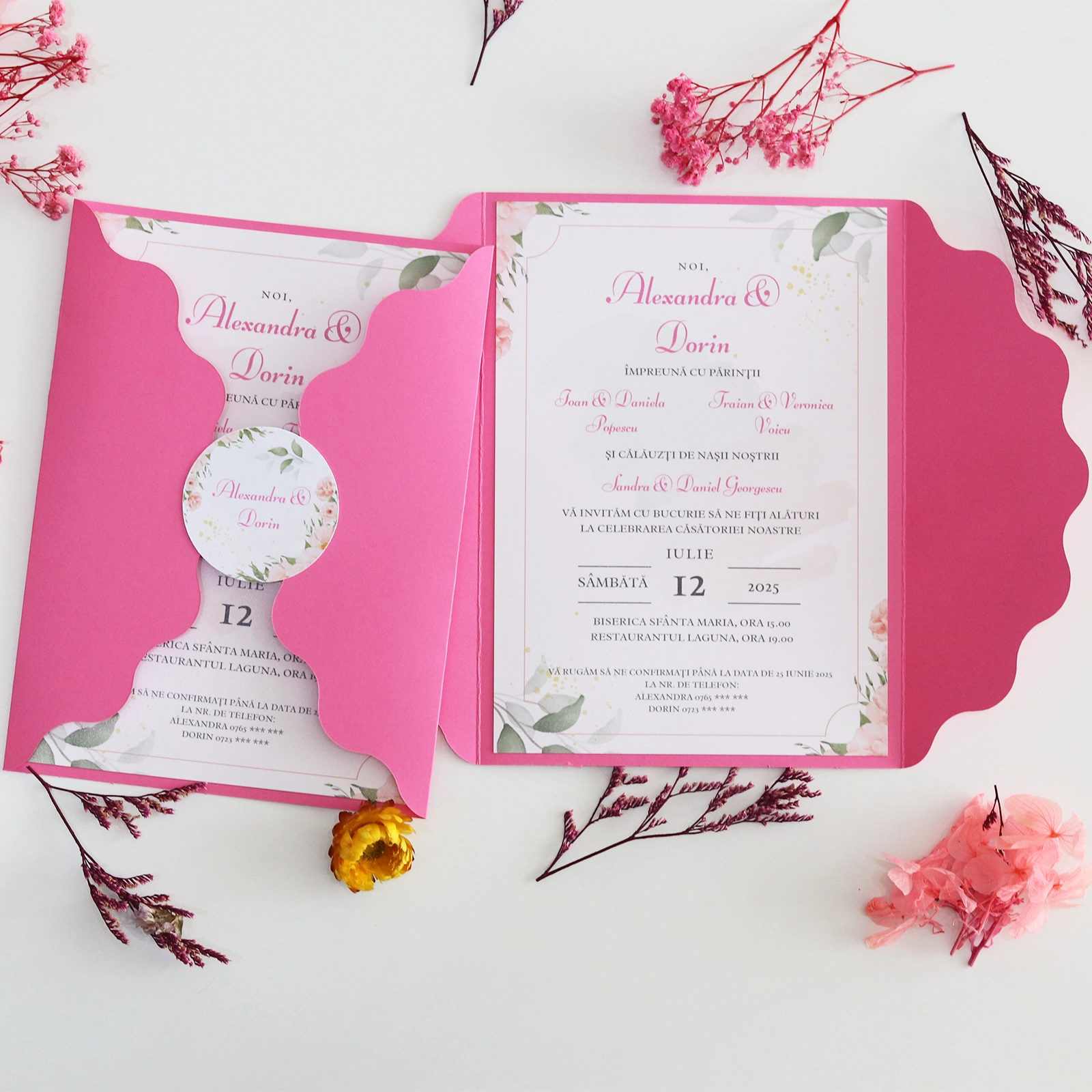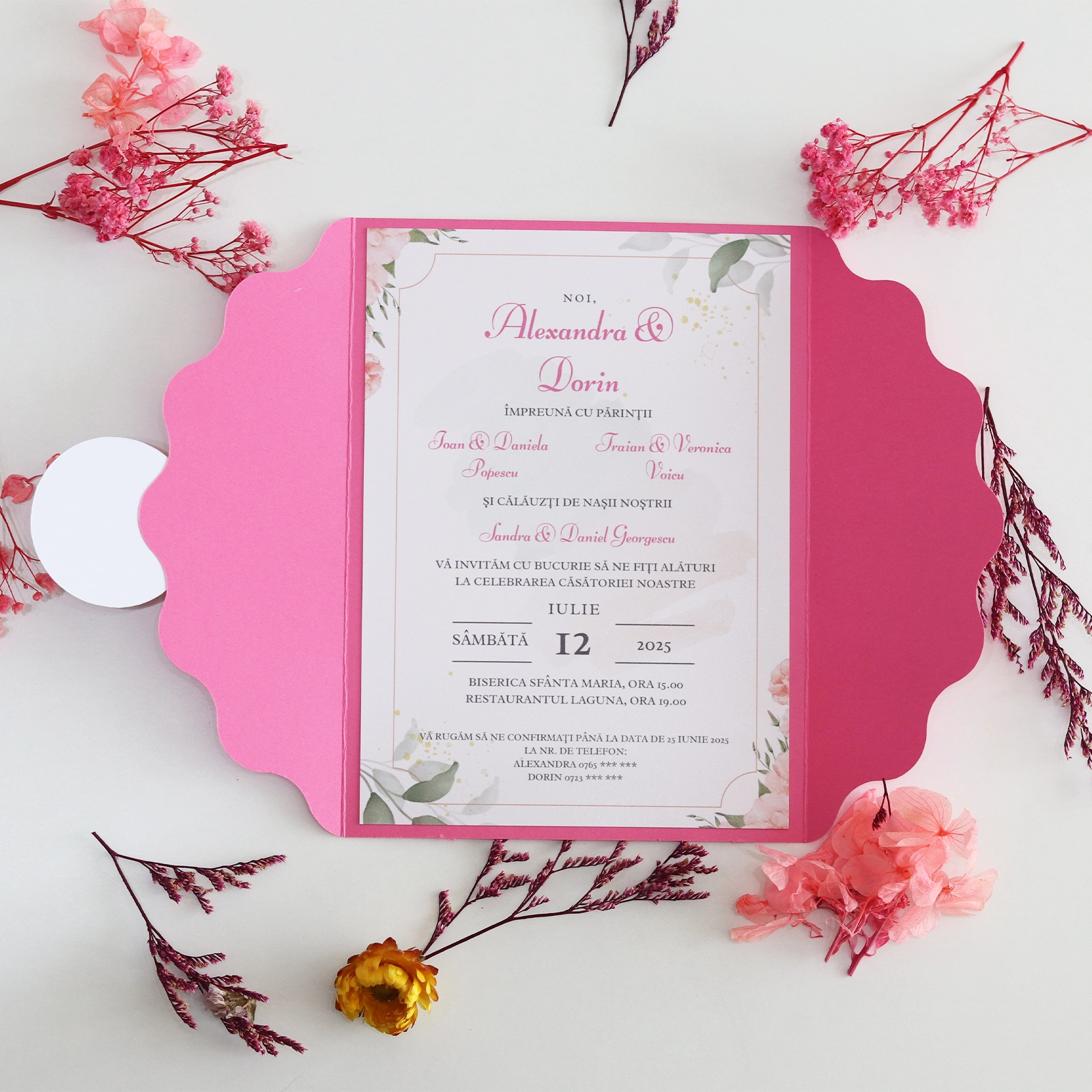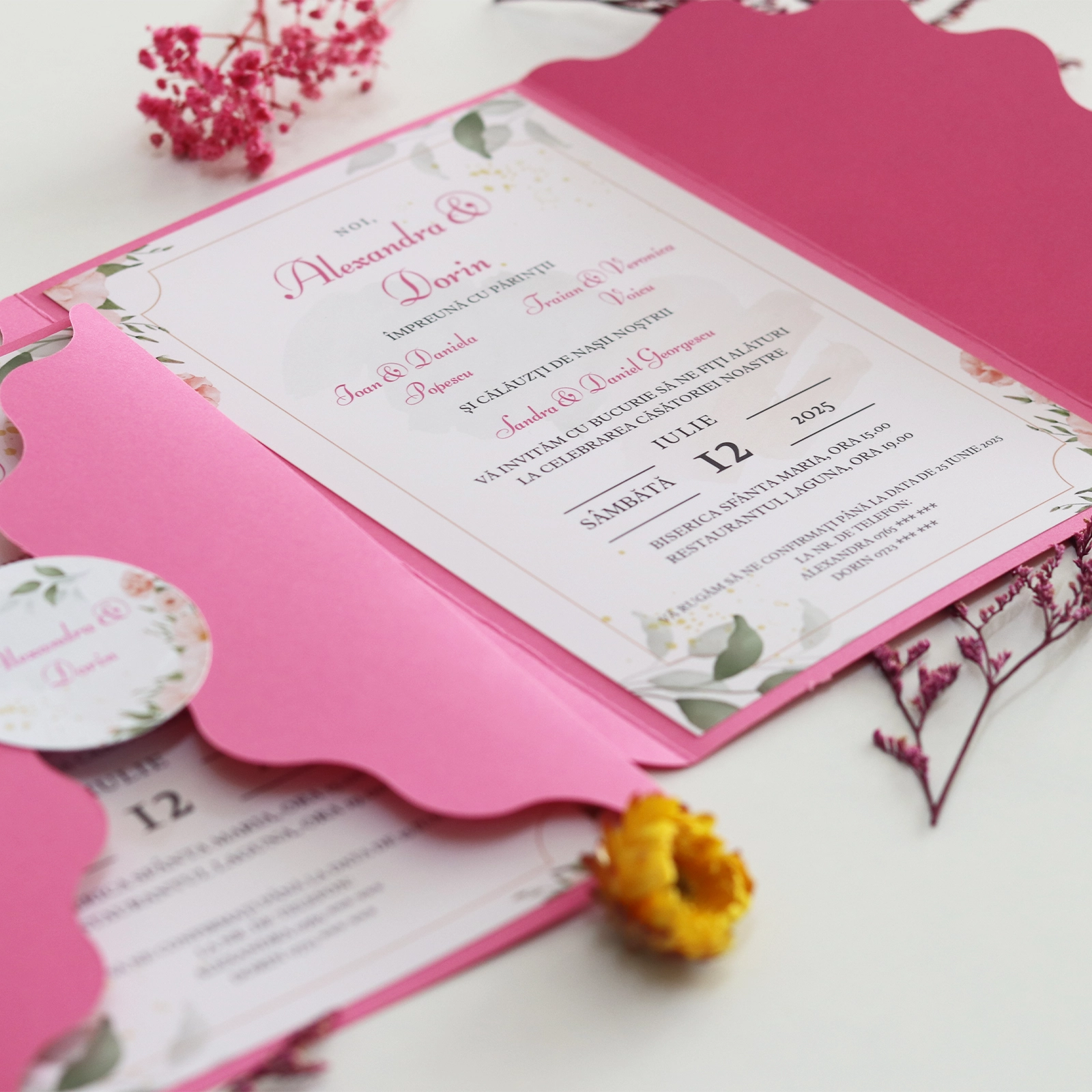 Această invitație de nuntă roz cu plic handmade este alegerea perfectă pentru cuplurile care apreciază eleganța subtilă. Fiecare invitație este creată cu grijă, pentru ca invitații tăi să simtă din primul moment emoția evenimentului.