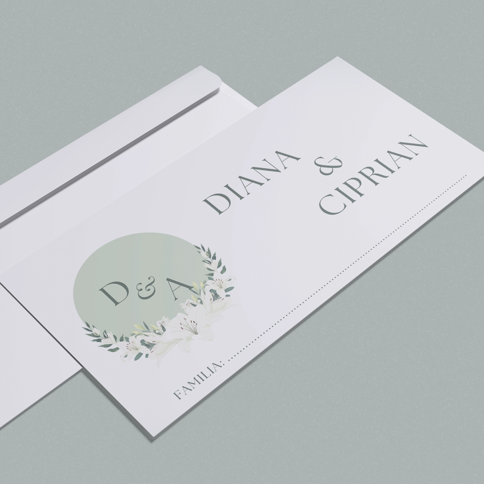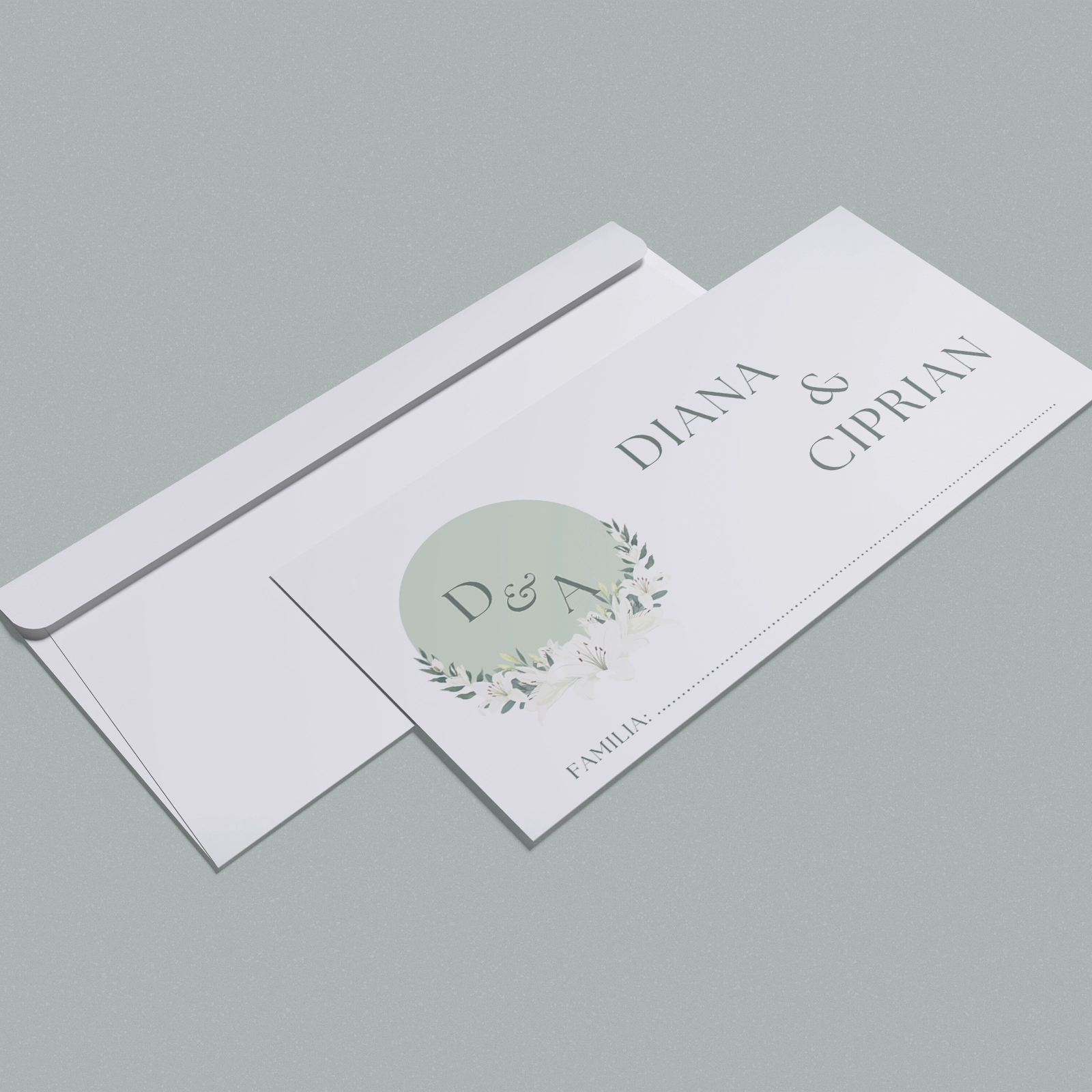 Imaginea este reprezentativă pentru varianta de plic din hârtie DL. Pentru varianta din carton, plicul este realizat handmade, iar aspectul poate prezenta mici variații, fiecare piesă fiind lucrată individual. Varianta din carton lucios este realizată handmade și pliată în 3, fiecare plic fiind unic și putând prezenta mici variații.