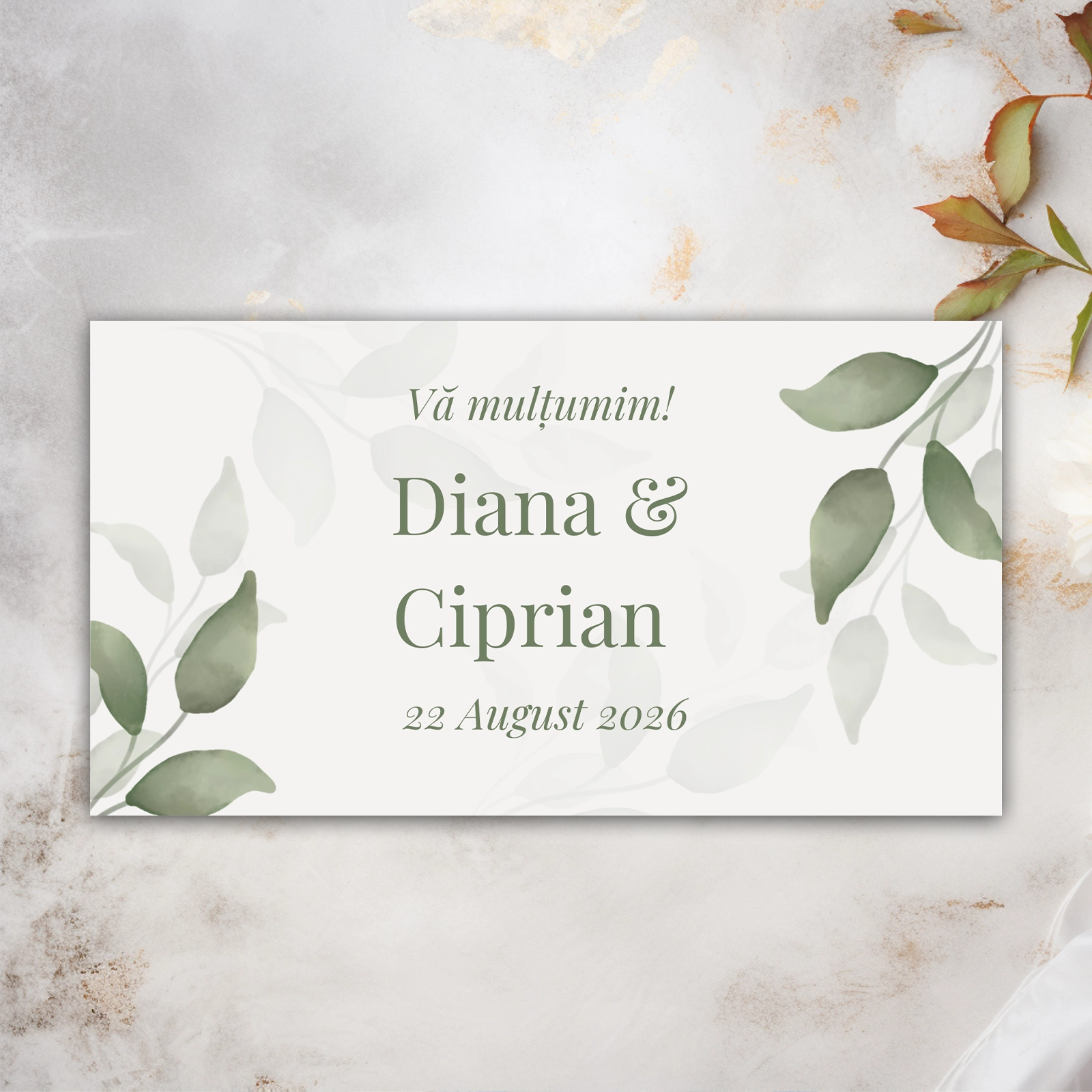 Completează decorul nunții cu un element elegant și bine definit prin etichetele autoadezive personalizate pentru nuntă, disponibile în formate dreptunghiulare. Designul curat și versatil le face ușor de integrat în orice tematică, de la nunți clasice și romantice, până la evenimente moderne sau minimaliste.