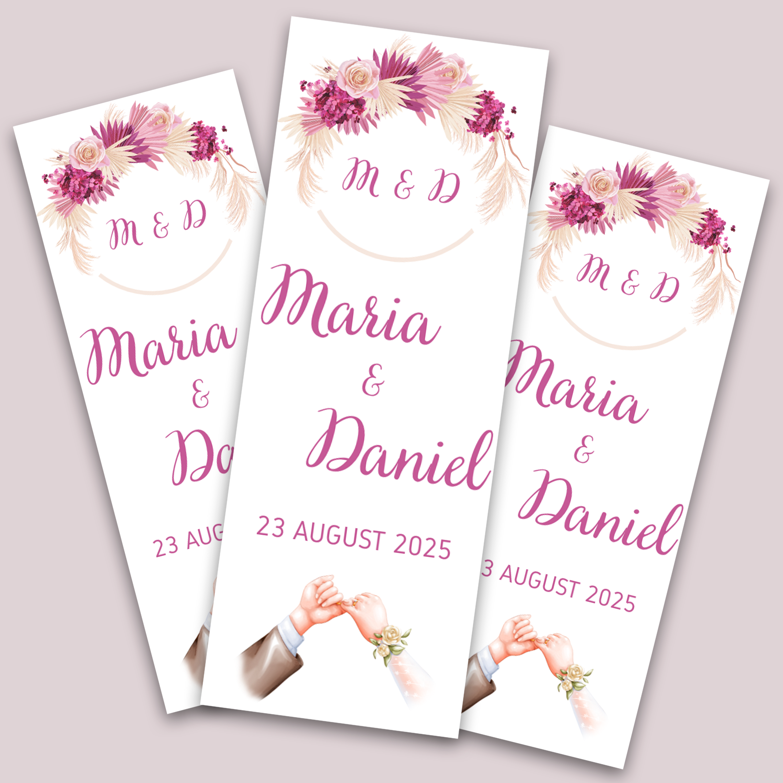 Creează amintiri de neuitat cu un sticker personalizat elegant, perfect pentru nunți, botezuri, aniversări sau alte evenimente speciale. Cu dimensiunea ideală de 3x8 cm, acest autocolant decorativ poate fi personalizat cu inițiale, nume miri și data evenimentului.