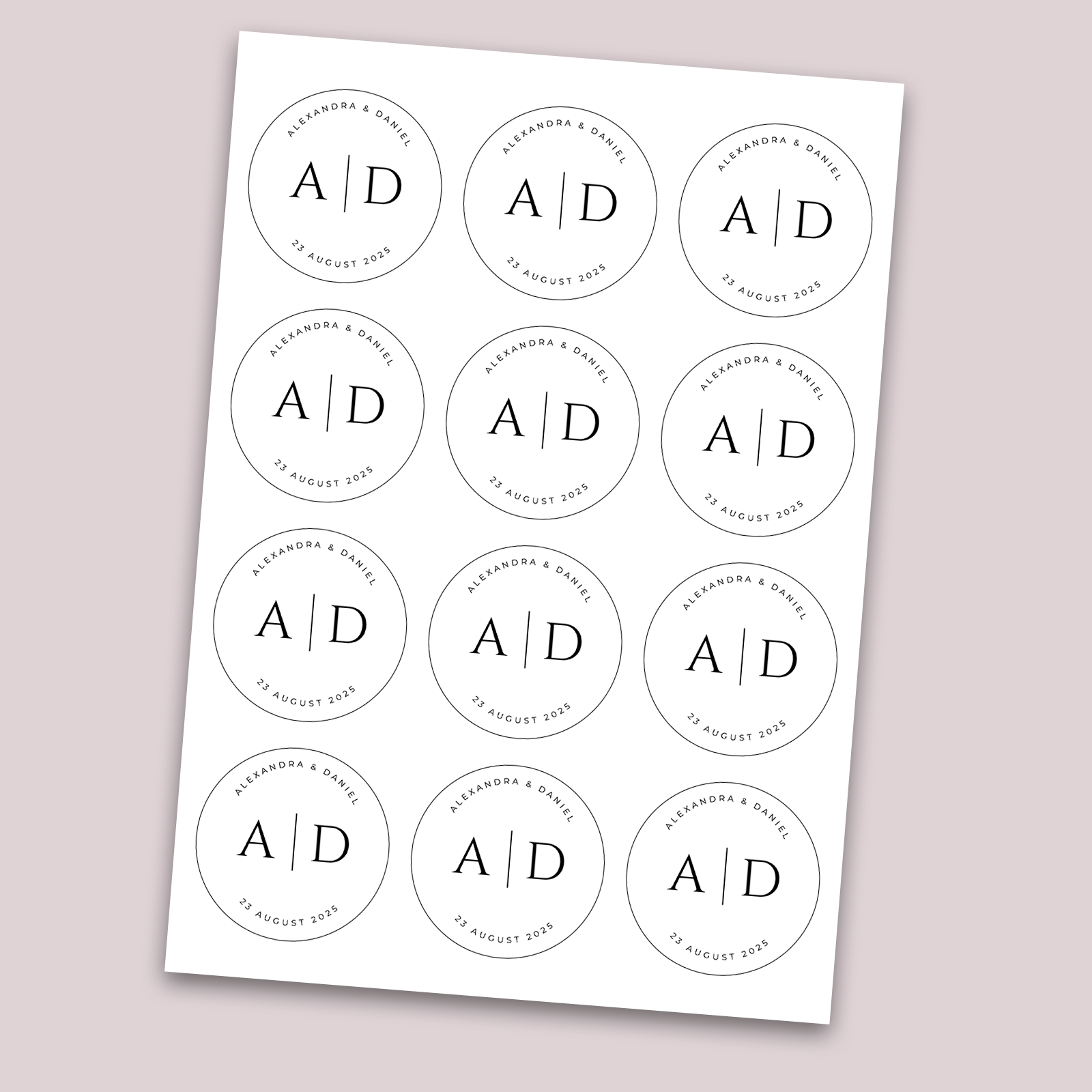 Fiecare sticker este imprimat cu grijă pentru a oferi un aspect profesional și rafinat. Alege să adaugi un detaliu unic evenimentului tău cu aceste stickere personalizate cu inițiale, nume miri și dată, create special pentru momente cu adevărat importante.