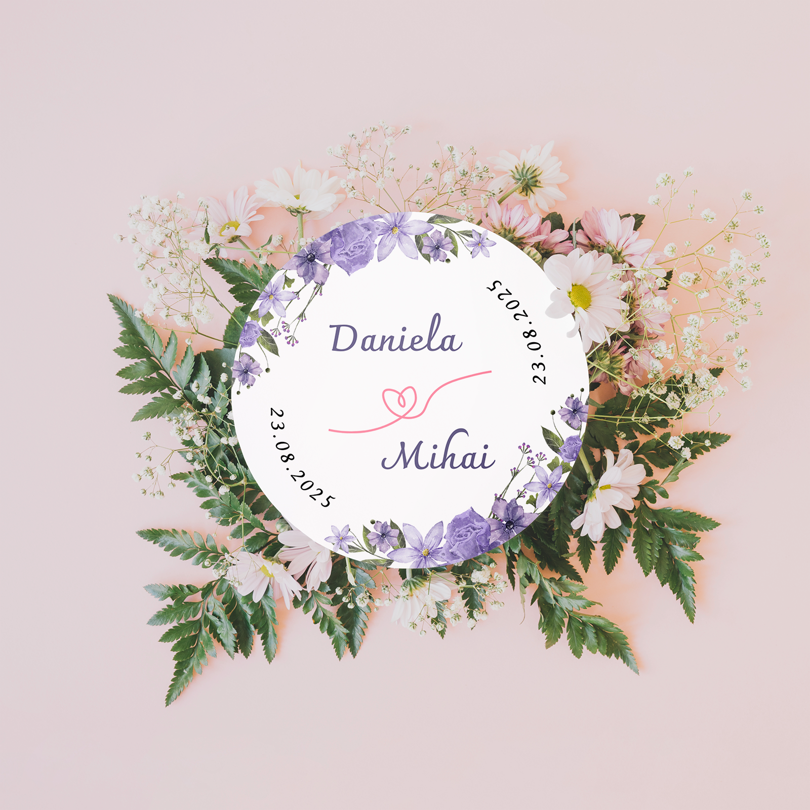 Fiecare sticker este imprimat cu grijă pentru a oferi un aspect profesional și rafinat. Alege să adaugi un detaliu unic evenimentului tău cu aceste stickere personalizate cu nume și dată, create special pentru momente cu adevărat importante.