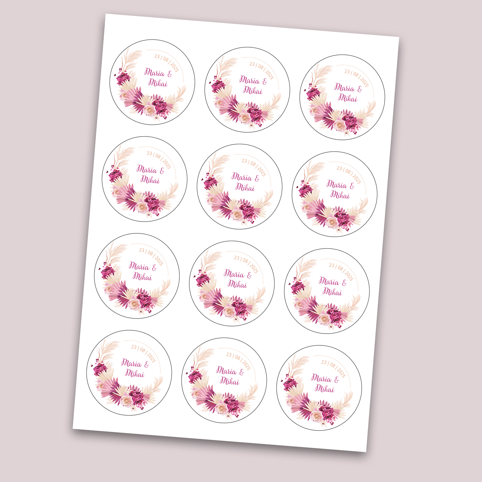 Fiecare sticker este imprimat cu grijă pentru a oferi un aspect profesional și rafinat. Alege să adaugi un detaliu unic evenimentului tău cu aceste stickere personalizate cu nume și dată, create special pentru momente cu adevărat importante.