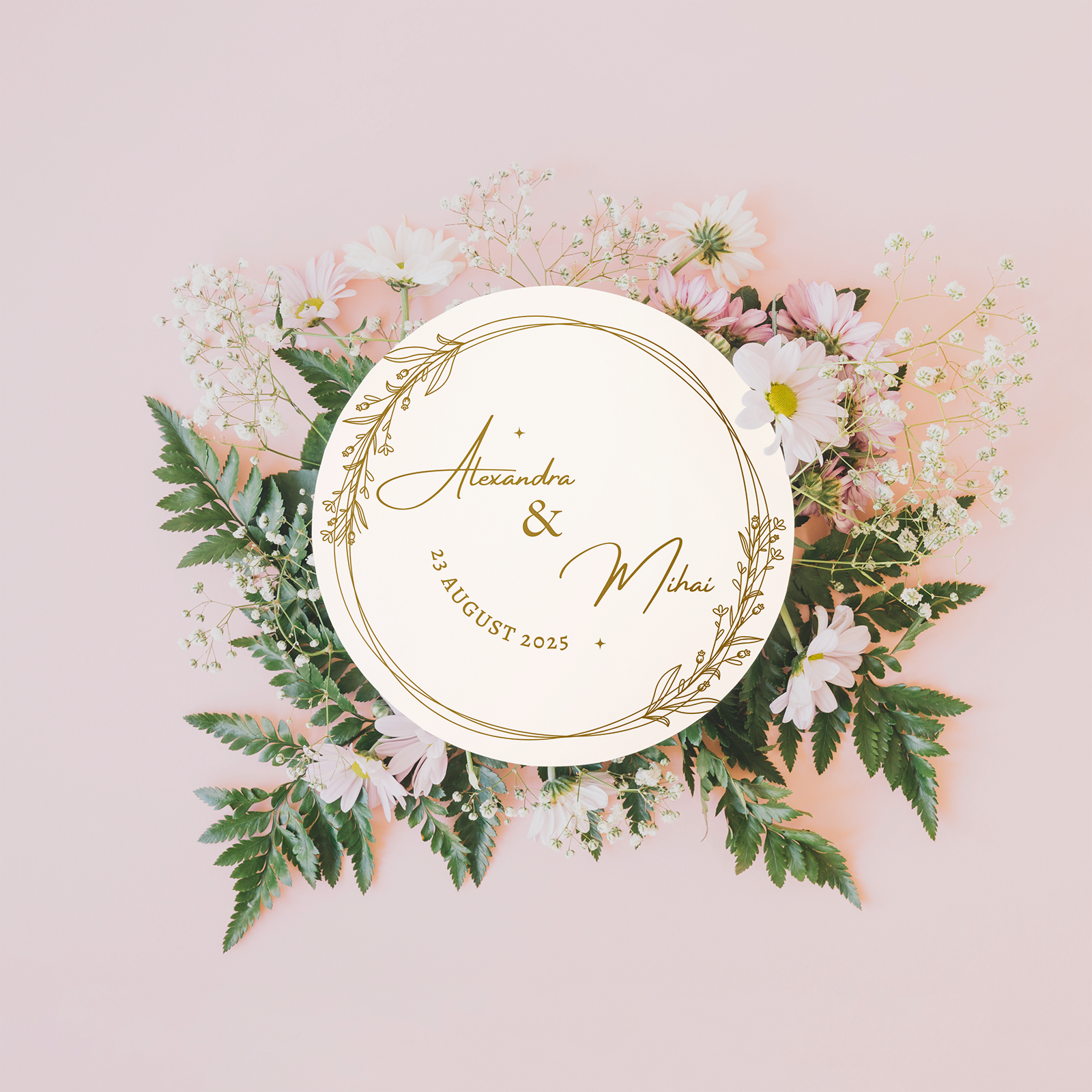 Fiecare sticker este imprimat cu grijă pentru a oferi un aspect profesional și rafinat. Alege să adaugi un detaliu unic evenimentului tău cu aceste stickere personalizate cu nume și dată, create special pentru momente cu adevărat importante.