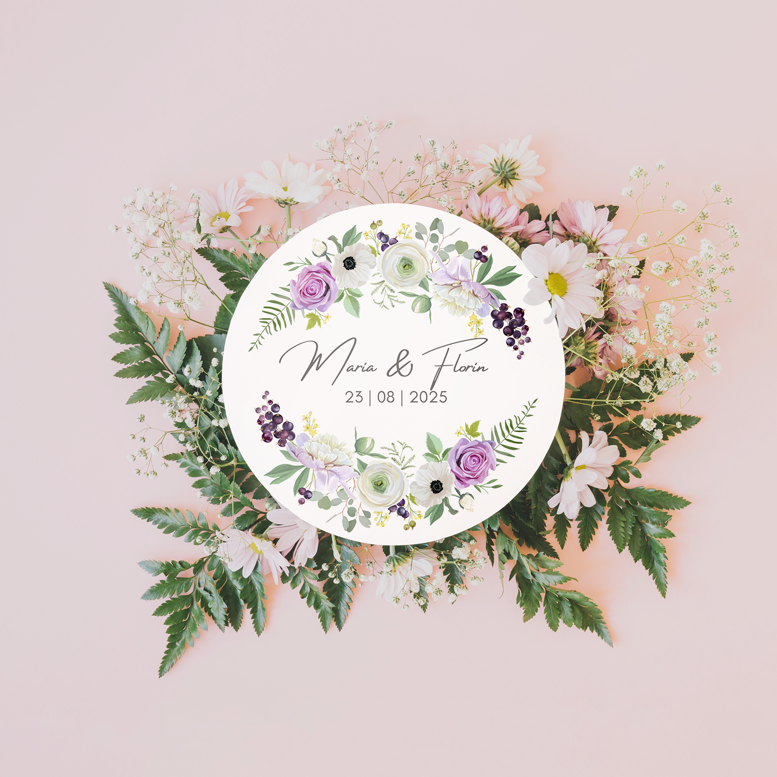 Adaugă un strop de eleganță și rafinament detaliilor din ziua cea mare cu aceste stickere florale personalizate, dedicate nunții